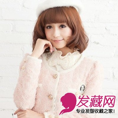 厚重感刘海的短发烫发将小女生的甜美感带出来,蓬松的内扣包裹住侧脸十分显脸小, 所以造型的瘦脸修颜感十分好。