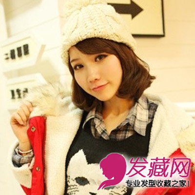 精致短发烫发发型,发尾的蜷曲如同章鱼脚一般灵动活泼十分显个性,冬天到了搭配上一顶帽子就可以轻松的拗出甜美范了。