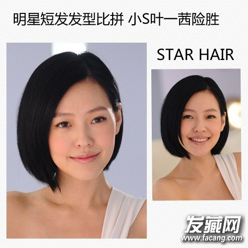 波波头造型有不对称的美感,同时能修饰脸型打造出修长脸型,这款黑色头发造型让小S变身清新女神。