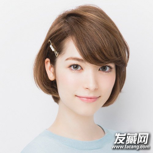 刘海的侧分设计遮盖额头修颜瘦脸,一边头发塞于耳后,搭配简约发夹显得十分的靓丽。