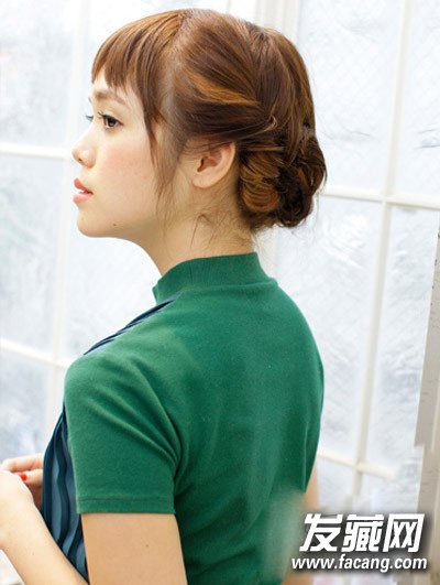 脑后的中短发编成紧致的辫子,盘起秀发露出完美脖颈,尽显优雅动人气质。