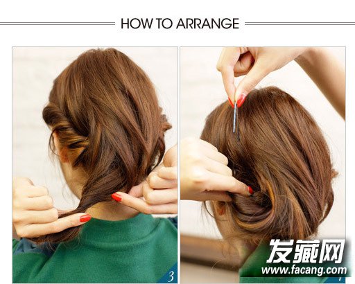 step3:取出脑后的头发扭转后拉扯出蓬松纹理。