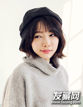 时尚的韩式短发蛋卷头发型,小小的波浪状勾勒出清新的气质感来的一面来,搭配上帽子正是这个冬季不错的造型选择。