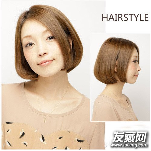 直发内扣波波头两边刘海轻松修出可爱小脸,而棕色发色让皮肤显得更加的白嫩。