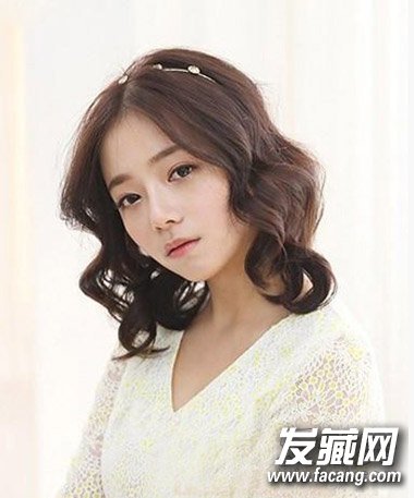 温婉动人的一款甜美的韩式蛋卷头发型,气质的中分发型起到完美的修颜与瘦脸效果, 点缀上发饰勾勒出别致的甜美来。