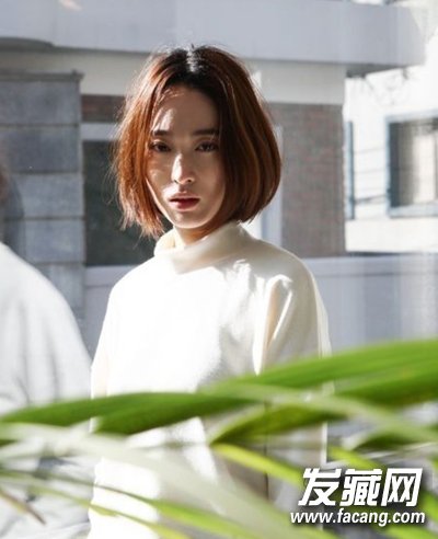 最直接的中分短发发型,简单干练,很显知性范,中分短直发搭配棕色染发甜美动人。