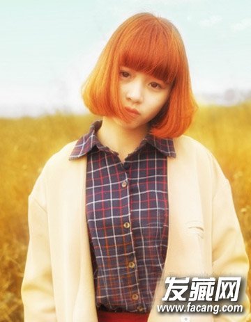 ,甜美的短发波波头不仅时尚而且颇有气质感,加上发尾的内扣显露出无比的时尚与气质来,橘黄色头发颇为显眼。