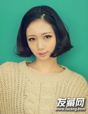 设计,清新自然的乌黑发色最显女生的清纯感了,而配合偏分形式的简单中短发发梢烫发更是可爱吸睛。
