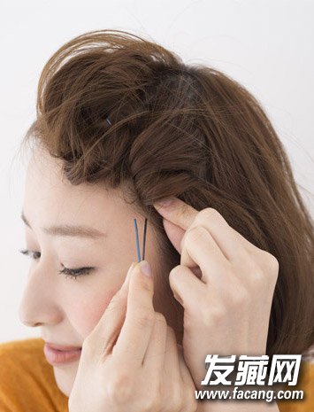 刘海烫出微卷弧度 DIY公主头扎发甜美清新