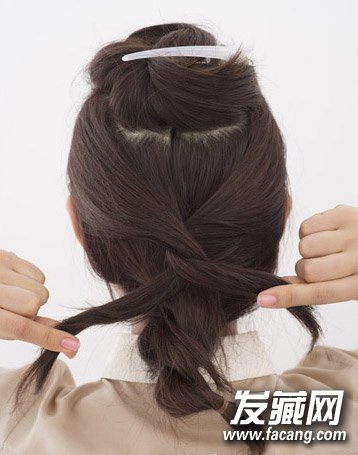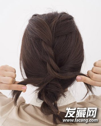 step3:再分别取出左右两侧的头发扭转成二股辫。