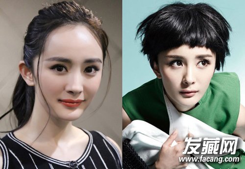 简约的马尾造型两边用细发丝修颜,让杨幂变优雅女神,而不规则假短发造型看起来另类个性,把杨幂本身的甜美清新气质掩盖住了。
