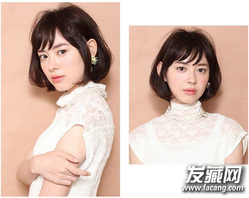 同样利用刘海来修饰额头和脸型,刘海贴近额头更显成熟稳重,略为凌乱的内扣波波头温婉修颜,让MM更显温柔。