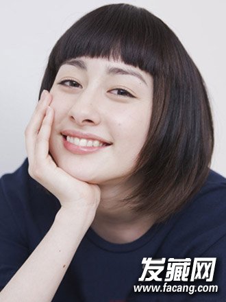 ,很适合各位圆脸女生们尝试,微卷的烫发设计加上齐刘海设计修饰出精致脸蛋。