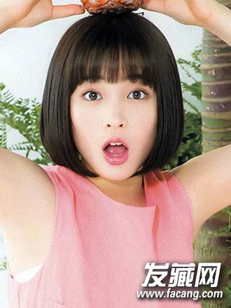 适合校园女生参考的一款韩式中短发发发型设计,乌黑莹亮的内扣波波头短发修颜瘦脸,清新靓丽。