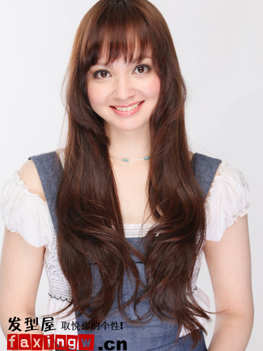 柔顺的长发,足够的光泽,秀发显得健康又好看,脸部的弧度设计,让大脸或方脸变可爱圆脸,整齐的齐刘海轻轻削薄一点,简洁清新,凸显双眼灵气明亮还能适当收敛脸型长度。