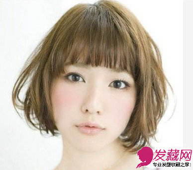 给人感觉非常可爱,尽显清爽和甜美。两侧的短卷发完美的修饰了脸型,非常适合方脸的MM哦!亚麻色的染发流露出活泼俏皮的气息。