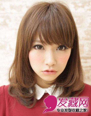 故意将刘海剪得略微细碎的小心机,发尾大大的卷,不贴合脸颊的蓬松感造型,方脸就这么简单的变成小V脸。歪歪的刘海非常甜美可爱,很适合青春活力的女生们。