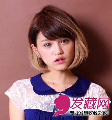 重点在于非常有弹性的渐变色彩的发色,深浅对比的发色大弧度的修饰了脸型,小脸效果非常神奇,个性十足。