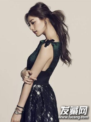 故意将烫卷长发打理得凌乱有层次,再简单扎到脑后,尽显女人妩媚。