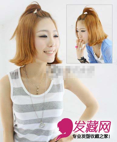 短发足够清凉,但进入初夏后,恨不得能更凉快一些,容易为额头“加温”的刘海成为重点“打击对象”!将刘海用彩色发绳束起,变成俏皮可爱的小马尾,让光洁额头享受清凉吧!
