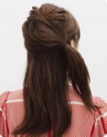 STEP 4将扎成马尾的头发向上抓起,用梳子倒梳,营造出头发空气感。