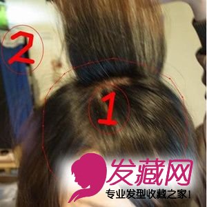 将头发分为上下两个区域,1为上区域,2为下区域。先把下区域的部分向内吹顺,再把上区域的头发用同样的发式吹顺。
