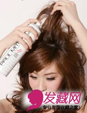 步骤二用定型喷雾在倒梳的地方喷两下,增加头发的造型感,防止头发塌下来。