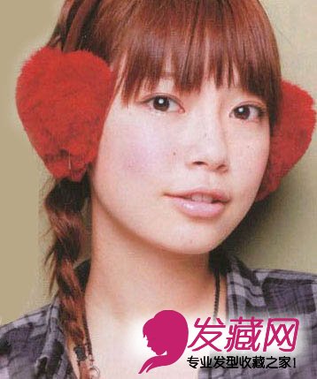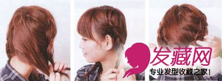 把头发分成左右两个部分,来编成三股编发,在中间的部位把两个编发结合一起。