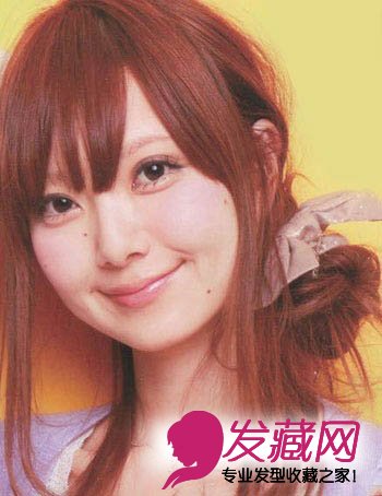 要把侧扎的辫子用松散的碎发来处理,这样会把脸部的轮廓修饰好,特别是在颧骨较突出的部位上用两侧顺直的碎发挡上,柔和面部线条。