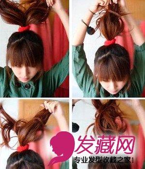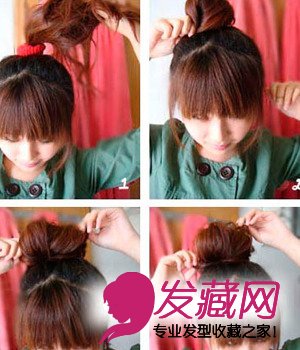 下来就是很基本的绕,单一方向。用皮筋固定,这里先不用发饰下来调整,稍微拉松,看个人喜欢的丸子大小来定就OK啦。头发层次很多的需要用U型卡子或者黑色卡子固定,不熟练也需固定,就算丸子绑的不好看,也可以用卡子调整好看。