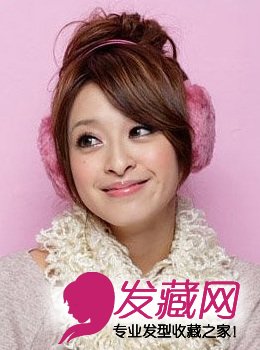 一般用高马尾直接捻转的丸子发髻很容易在视觉上显得脸比较大(因为丸子本身比较集中),但分两束绑的扩散型丸子就会比较平衡,还可以加上毛毛耳罩增加脸的造型感,就会更平衡。