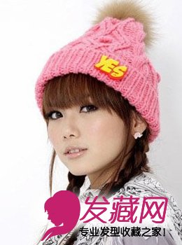 一般的辫子比较容易显得呆而不是可爱,要绑可爱辫子的方法是,绑细细的有变化的卷曲辫,当然两边的辫子也不要绑得一样,还有记得再戴上pink的针织毛帽加强lovely的可爱感。