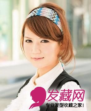 顶部头发逆向梳出蓬松感,后部头发左右分成两部分,分别从下方拧卷,集中在中央固定。最后戴上发带装饰。