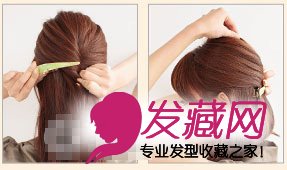 2.为防止整理好的头发散掉,一只手按压住发夹,一只手将顶端的头发抽出一点点,增加顶部头发高度。