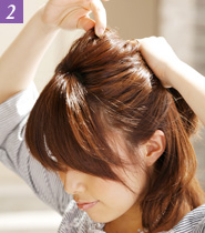 头顶的头发用手指抓住轻轻地拉出一些,这样会使头顶头发显得高些且使整个发型显得时尚点。