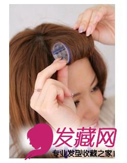 STEP.1 首先要处理刘海 部分,将一部分刘海用卷发器往里卷。太贴的刘海是绝无时尚感可言的哦!