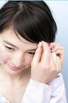 Step2、将刘海稍微地靠右边分开,为了使刘海保持斜面的姿态,涂上一点发蜡。