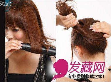 2.留一束在脸周围的头发,把背部的头发拧高并加以固定,使头发的左侧面成为重点。