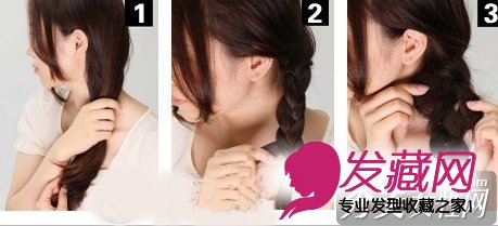 Step3用细橡皮筋扎好发尾。如果你的头发较少,可以用手指轻轻将麻花辫子拉松松散一些,这样,蓬松的辫子做成的发髻就不会看上去太小了。