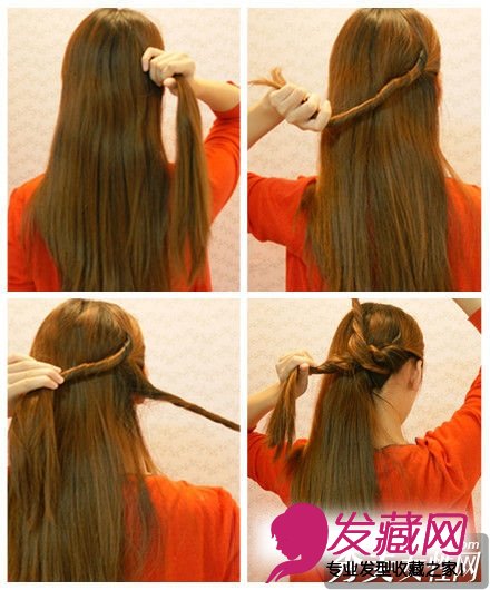 在一侧取一束头发,拧起来;取新的发束拧起来,绕在最开始的发基束上