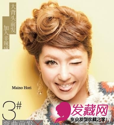 3、拧起的头发在右耳上方盘成丸子。发梢用发夹固定就完成了。