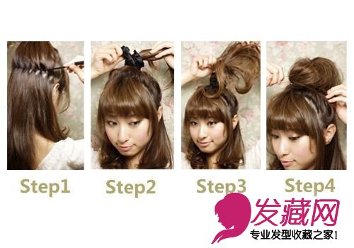 STEP4:做丸子头,U型夹固定,将多余的头发收进去。