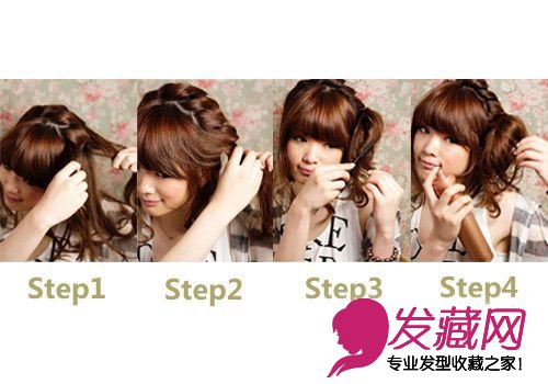 STEP3:用梳子倒刮。将麻花辫下的头发打散,形成一个在耳边的包包。