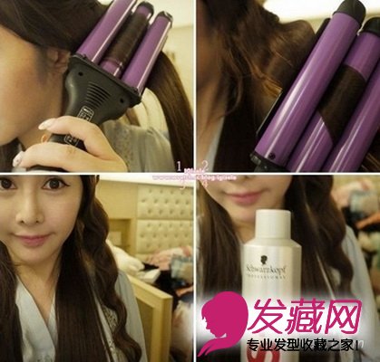 三管夹加热后开始夹头发,像波浪一样,定点约20秒即可。然后接着往下夹,一直夹到发尾。加好后马上用定型喷雾定型即可。