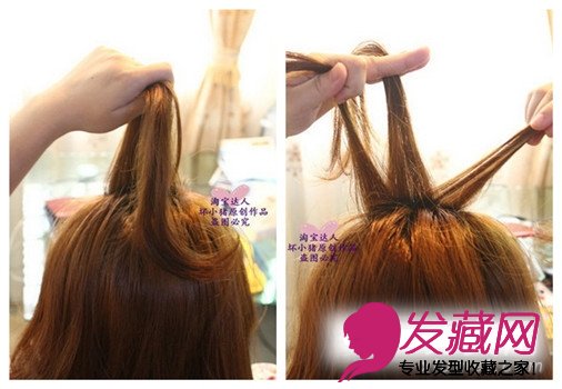先在头发顶区中间分出一束发片,以三手辫加编的手法从上往后扎。