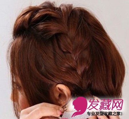 短发编发教程六:拉松之后在刚才绑了黑色橡皮筋的位置,戴上一个闪亮的小发夹,这款短发编发基本上就已经完成了。