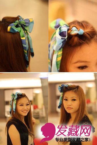 浅棕色的头发和蓝色的发带,也算迎合了今年的撞色潮流。
