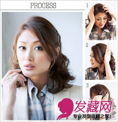 用手将脸部周围和脑后的头发进行梳理。脸部周围的头发不需要太多,留下一些碎发能将发际线遮住就可以了,其余的头发都理向脑后。