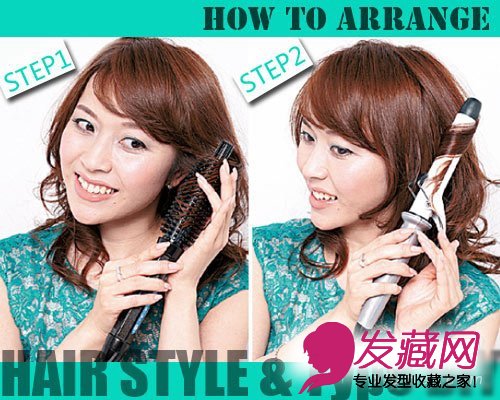 STEP2 依次抽出发束使用中号电发棒随意压卷,记得发尾要以“C”状的弧度外翻。