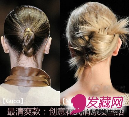 而却清爽的结当然就是将长发马尾统统收起变成发髻结了!比如Gucci秀场的这款拧扭麻花辫子发髻非常有趣。结合了湿发服帖的效果和挑染发色的装饰,让发髻造型精致立体,又如巧克力慕斯一般“秀色可餐”。无独有偶,Michael Kors秀场上亮相的交叉发髻结,将头发分成3-4份,相互缠绕打结,制造出看上去很随意却充满趣味感的发髻造型,也很有创意!